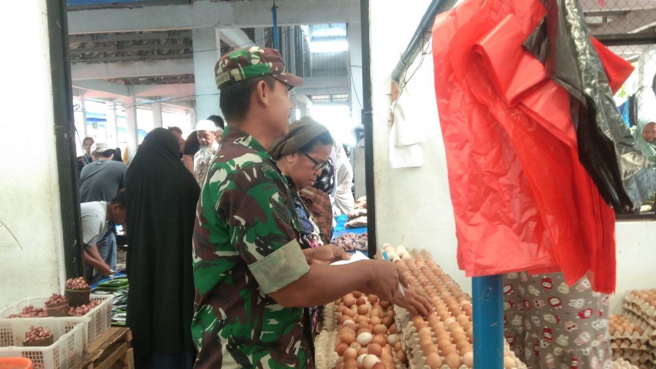 SIDRAPTIMUR.COM, SIDRAP — Bati Tuud Koramil 1420-05/Dua Pitue Kodim 1420/Sidrap Peltu Abd. Rahman turun langsung ke Pasar Tradisional Lawowoi bertempat di Kelurahan Lawowoi Kecamatan Watang Pulu Kabupaten Sidenreng Rappang, dalam rangka mengecek harga bahan pokok dalam rangka mendukung program ketahanan pangan nasional, Minggu (17/03/2024).