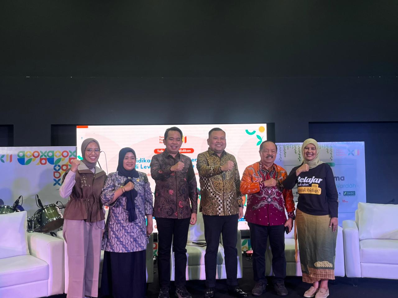 Setelah penyerahan penghargaan, Wabup Sidrap tampil sebagai salah satu pembicara dalam talkshow pendidikan bersama tiga kepala daerah lainnya.