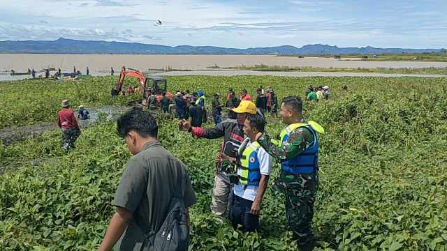 TNI, Pemda, dan Warga Bersatu Bersihkan Eceng Gondok di Danau Sidenreng