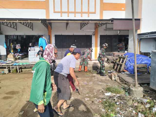 ​Dipimpin langsung oleh Batuud Koramil 1420-02, Pelda Abdul Halim Hajji, aksi ini menyasar tumpukan sampah di pelataran pasar yang selama ini mengganggu estetika dan kenyamanan pengunjung.