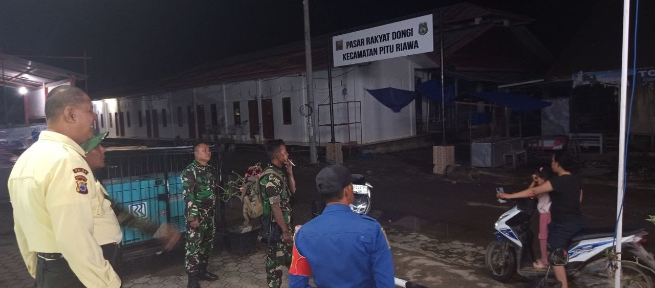 Sidrap, Sidraptimur.com – Guna memastikan situasi keamanan dan ketertiban masyarakat (Kamtibmas) tetap kondusif, Personel Koramil 1420-05/Dua Pitue bersinergi dengan petugas Pemadam Kebakaran (Damkar) melaksanakan patroli siskamling di wilayah Desa Dongi, Kecamatan Pitu Riawa, Kabupaten Sidrap, Senin malam (05/01/2026).