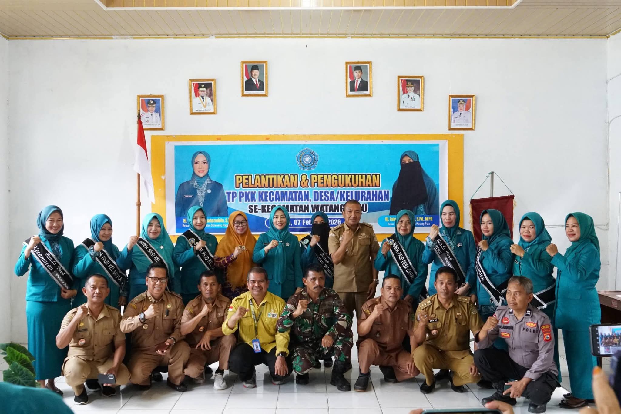 Sidrap, Sidraptimur.com – Ketua Tim Penggerak PKK Kabupaten Sidenreng Rappang (Sidrap), Ny. Hj. Haslindah Syaharuddin, S.Pd., melantik Ketua TP PKK Kecamatan Watang Pulu, Ny. Hj. Fatmawati Musa, S.Pd., M.Pd., bersama seluruh Ketua TP PKK Desa dan Kelurahan se-Kecamatan Watang Pulu, Sabtu (7/2/2026).